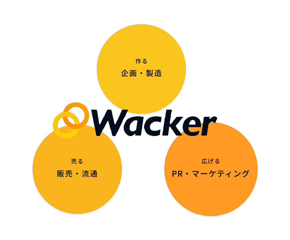 しかし、Wackerはこの従来の枠組みを超えて、全てのステージにおいて独自の強みを発揮することができます。 製品・ブランドの企画・製造ラインの調整から始まり、マーケティング・販売戦略の策定に取り組み、最終的な売上達成までを一気通貫してサポートすることができます。